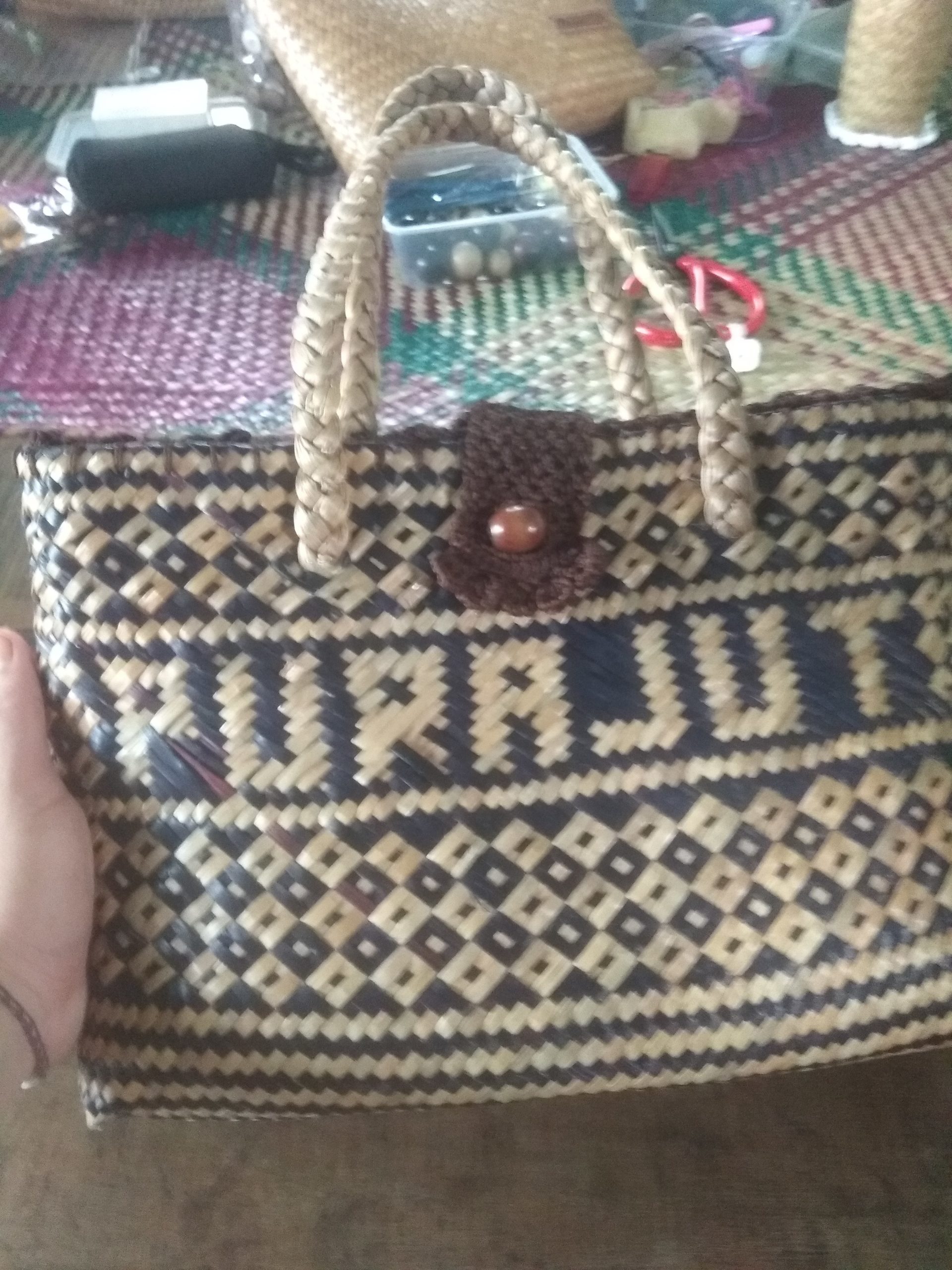 Tas purun yang di kombinasikan dengan rajutan