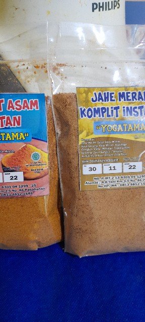 Minuman segar dari rempah2 alami asli yg ada dilingkungan setempat. berupa cair dlm kemasan botol plastik 250 ml, & yg berupa serbuk / instant dlm kemasan pouch plastik utk sementara 175 g. tp setelah kemasan yg permanen selesai ganti kemasan permanen dari aluminium foil agar lebih tahan lama daya simpanya.