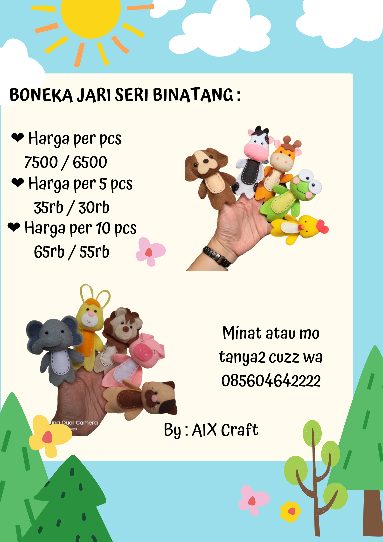 Menjual kerajinan dari bahan flanel, dengan beragam model, ukuran dan harga .