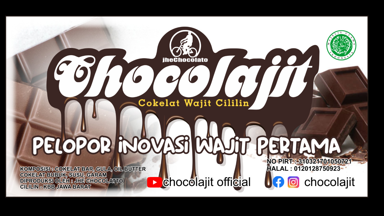 saya jajang h saputra, founder dari chocolajit indonesia, bergerak di industri inovasi kuliner. wajit cililin kuliner khas kab bandung barat ini, berusia satu abad lebih, tahun 2015, chocolajit menjadi pelopor inovasi wajit pertama di dunia. sejak saat itu, chocolajit digemari semua lapisan masyarakat. Wajit low sugar.... !!! bisa juga chocolajit low sugar. Menjadi kunci untuk masuk ke pasar yang sudah ada. Selain ramah lingkungan, wajit dan chocolajit terdengar tidak menakutkan, dan, rasanya baik untuk kesehatan. Pun, dalam pengembangan inovasinya. Menciptakan pasar baru untuk chocolajit, mesti melalui rumah inkubasi, prioritas pengembangannya ada di sektor Kuliner Ecoprint Animasi Marketing berbasis aplikasi Terakhir, wisata Gastronomi Kini, Semua orang bisa menikmati chocolajit dan wajit dalam suasana wisata Gastronomi.