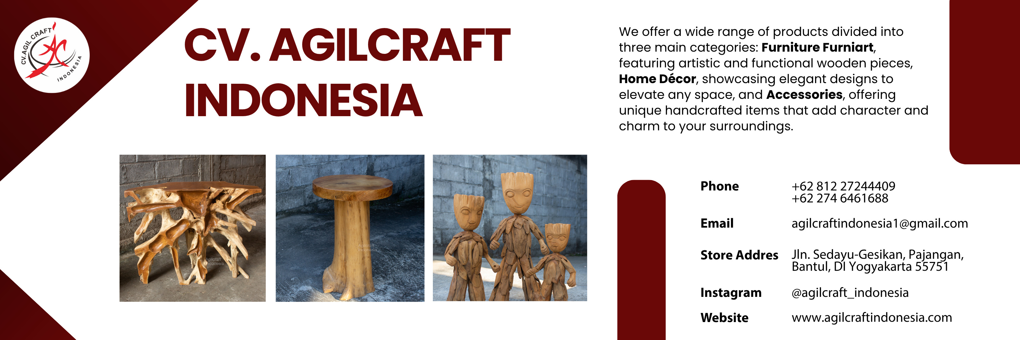 We are specializing in the production of teak root furniture and home decoration accessories. We transform natural teak root into unique, artistic, and sustainable pieces that combine craftmanship, and eco-friendly material.