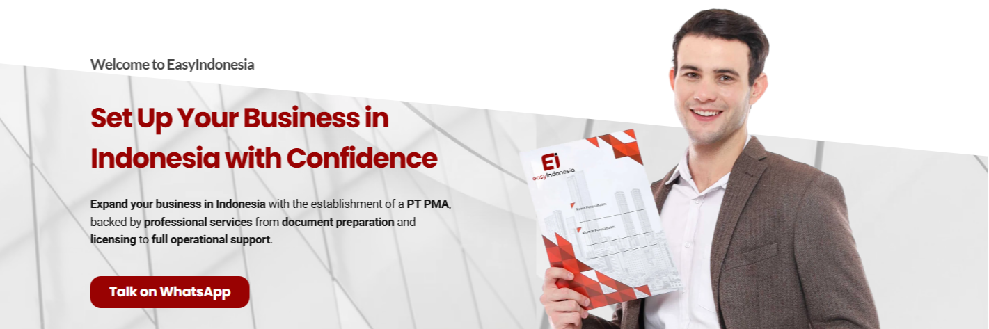 Official Website: www.easyindonesia.com EASYINDONESIA.COM beroperasi di bawah CV Legalitas Mudah Indonesia dengan Nomor Induk Berusaha (NIB) 1708240017075. EASYINDONESIA.COM berkomitmen untuk memberikan layanan legal yang aman, transparan, dan terpercaya guna membantu para pemilik usaha memenuhi ketentuan pemerintah. Kami menyediakan layanan pendirian badan usaha (PT dan CV), pendaftaran merek dagang, serta berbagai solusi legalitas bisnis lainnya untuk mendukung pengusaha dan pelaku UMKM membangun bisnis yang legal dan berkelanjutan. Seluruh layanan EASYINDONESIA.COM dilaksanakan sesuai dengan regulasi dan ketentuan hukum yang ditetapkan oleh Pemerintah Republik Indonesia, termasuk melalui sistem resmi berikut: ⦁ Kementerian Hukum dan HAM (AHU Online) — untuk pendirian badan usaha dan validasi dokumen hukum. ⦁ Kementerian Investasi/BKPM (OSS RBA) — untuk perizinan usaha dan penerbitan NIB. ⦁ Direktorat Jenderal Kekayaan Intelektual (DJKI) — untuk pendaftaran merek dan perlindungan Hak Kekayaan Intelektual. Seluruh layanan EASYINDONESIA.COM dilakukan secara profesional, mengikuti hukum dan regulasi Indonesia, serta terintegrasi dengan sistem dan platform pemerintah yang berlaku.