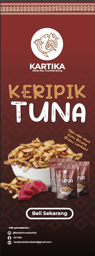 UMKM Kartika memproduksi Keripik Tuna dari daging ikan tuna dan di olah secara higienis sehingga menghasil rasa yang gurih dan lezat. Keripik Tuna juga termasuk oleh-oleh prioritas kas Kota Bitung