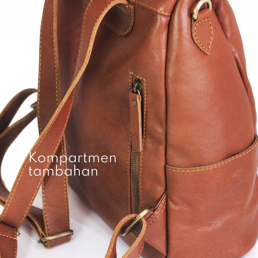 Backpack uniq, simple, multi fungsi karena ada 2 strap, sekaligus roomy…kurang apa coba ? Backpack kulit cewek yang terbuat dari kulit sapi asli jenis full grain yang jelas jenis kulit grade A, kulit terbaik. Hadir dengan warna camel yang alami. Pas buat menunjang penampilan kalian biar tambah kece dan elegan. Tas backpack kulit cewek ini emang cocok banget buat dibawa kemana aja, mau ngantor? ngampus? atau jalan-jalan? all it’s okay. Ada 1 kompartement utama + 5 kantong di bagian luar ! Bagian dalam ada juga kantong dengan zipper YKK + tempat hp.Backpack kulit cewek ini berdimensi : 31 x 35 x 14.5 cm. Untuk request warna tertentu bisa langsung hub mba admin ya.
