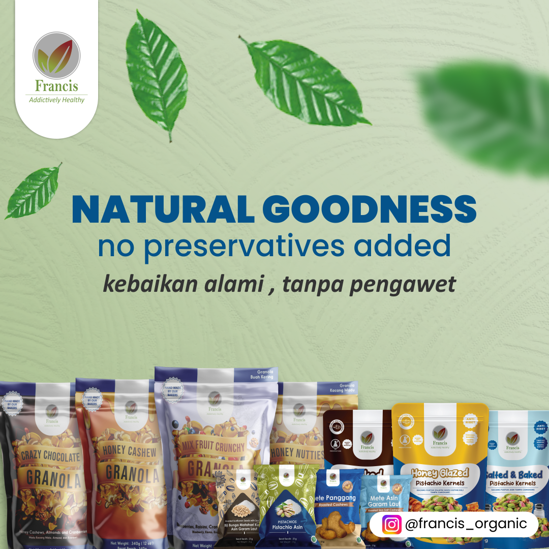Created by Francis, our founder at the age of 15. PT. PANGAN KREASI MAKMUR, aims to create a healthy lifestyle for the hundreds of millions in Indonesia. Through personal experiences, of his family members, may that be asthma or diabetes, he aimed to create healthier alternatives to well-known snacks. Innovating through trial and error. In just over 2 years, the brand has entered into the nations largest retailers, like Alfamart, Yogya Supermarket, Ranch Market to pharmacies such as Watsons & Kimia Farma (nations largest pharmacy). The brand is now sold it over 3.000 locations nationwide from Sulawesi to Papua. Vision To be the top of mind healthy foods and snacks brand in Indonesia Mission 1. To provide nutritious and delicious products made by the highest quality ingredients 2. To be environmentally conscious and sustainable as well as promote sustainable living in this ever changing world 3. To be an advocate in healthy living.