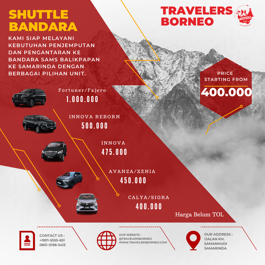 PT. TRAVELERS BORNEO INDONESIA, melayani jasa perjalanan trip budaya Kalimantan timur seperti trip Orang utan di Sangata, trip 3 danau di kutai kartanegara, trip budaya Pampang , rental mobil dan penyedia transportasi khusus di Kalimantan timur