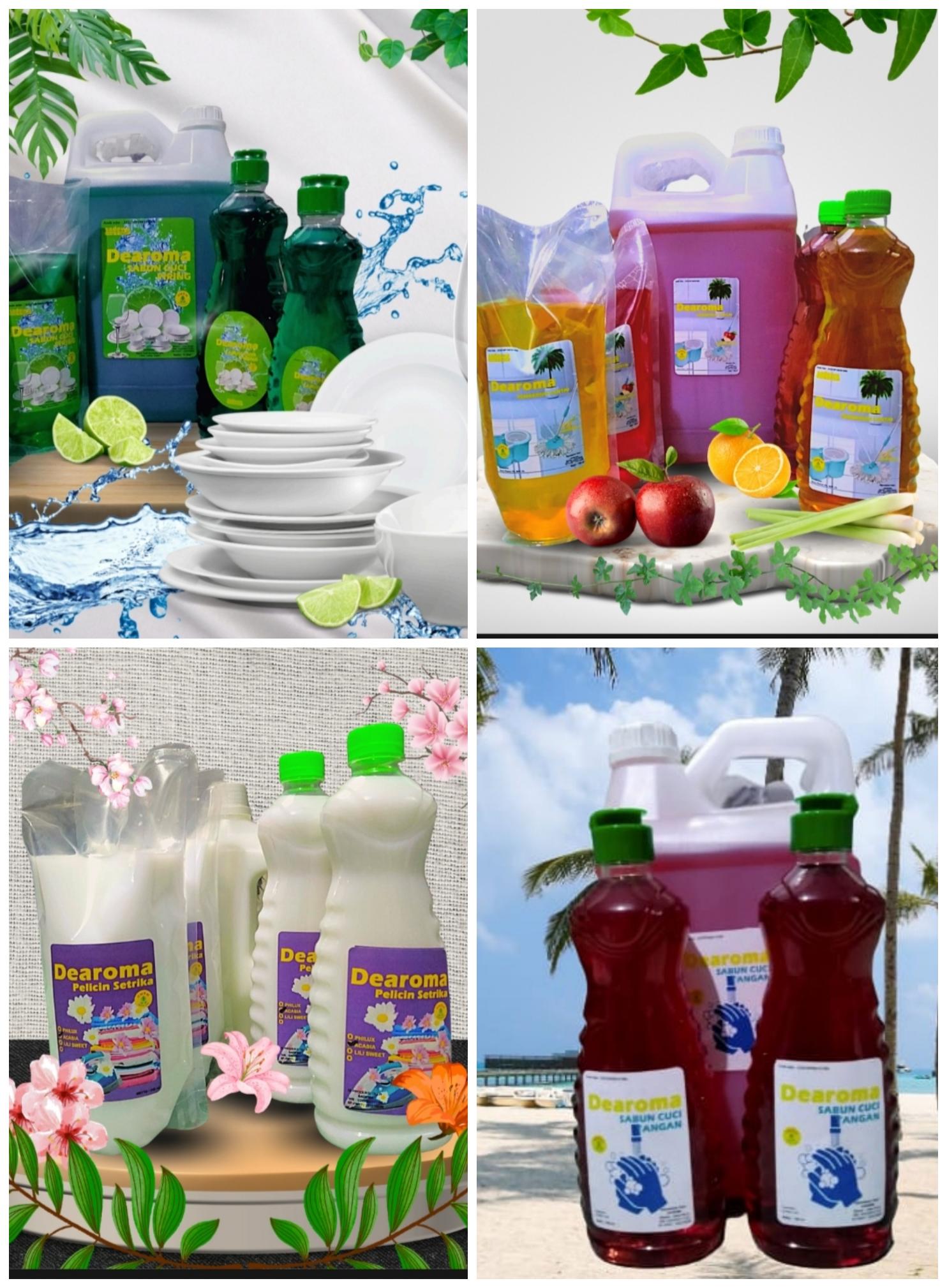 Dearoma cairan pembersih Rumah tangga Kwalitas dan harga bersaing,ramah lingkungan dan tidak panas di tangan,legalitas usaha SP-PKRT,Sertifikasi Halal,HAKI